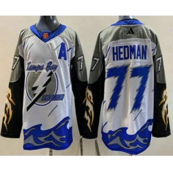 Men's Tampa Bay Lightning #77 Victor Hedman White 2022 Reverse Retro Authentic Jersey