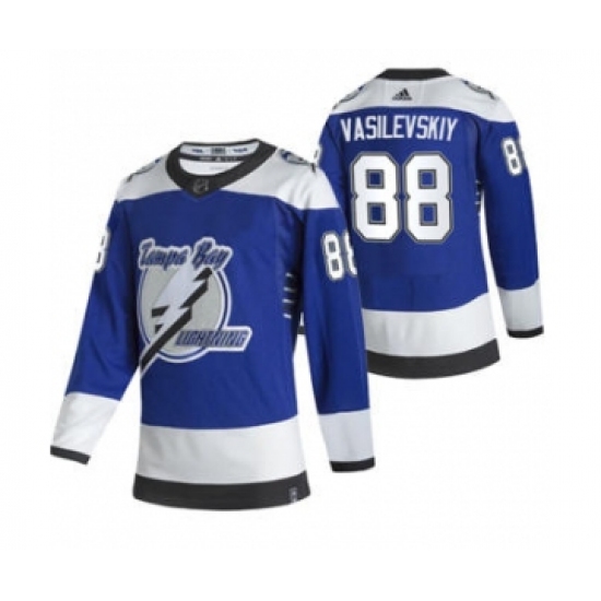 >Men's Tampa Bay Lightning #88 Andrei Vasilevskiy Blue 2020-21 Reverse Retro Alternate Hockey Jersey