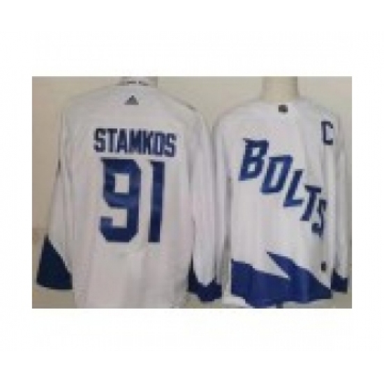 Men's Tampa Bay Lightning #91 Steven Stamkos White 2022 Reverse Retro Stitched Jersey