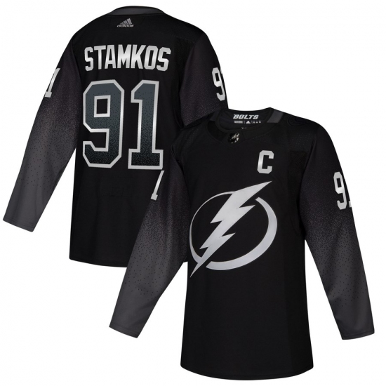 Men's Adidas Tampa Bay Lightning #91 Steven Stamkos Authentic Black 1917-2017 100th Anniversary NHL Jersey