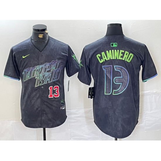 >Men's Tampa Bay Rays #13 Junior Caminero Number Charcoal 2024 City Connect Limited Stitched Jersey