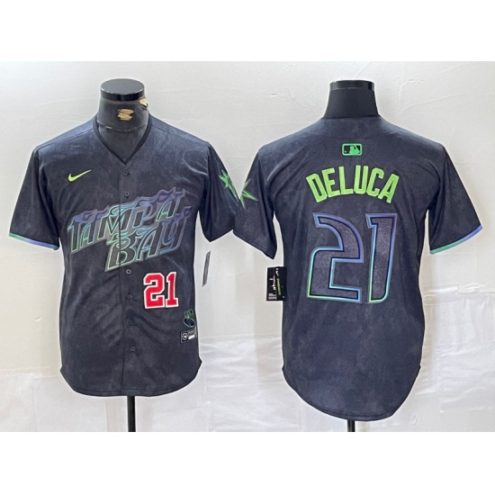 Men's Tampa Bay Rays #21 Jonny DeLuca Number Charcoal 2024 City Connect Limited Stitched Jerseys