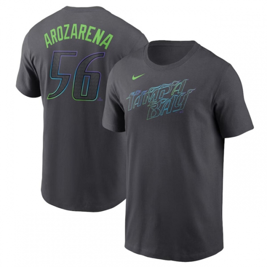 Men's Tampa Bay Rays #56 Randy Arozarena Charcoal 2024 City Connect Fuse Name & Number T-Shirt