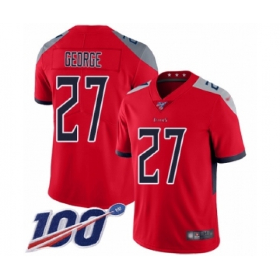 >Men's Tennessee Titans #27 Eddie George Limited Red Inverted Legend 100th Season Football Jersey
