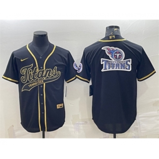 Men's Tennessee Titans Black Gold Team Big Logo With Patch Cool Base Stitched Baseball Jersey
