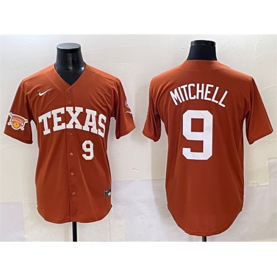 >Men's Texas Longhorns #9 Joley Mitchell Orange 2025 Softball National Champions & SEC Patch Stitched Jersey