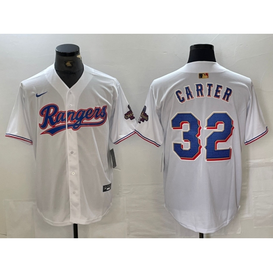 Men's Texas Rangers #32 Evan Carter Number White 2023 World Series Champions Cool Base Jerseys