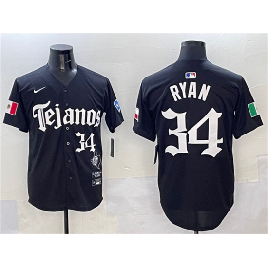 >Men's Texas Rangers #34 Nolan Ryan Black Mexico 2025 Vapor Premier Limited Stitched Baseball Jersey