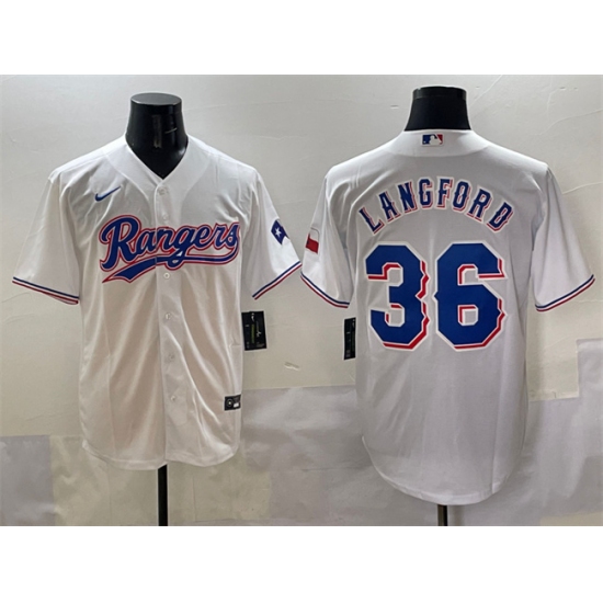 Men's Texas Rangers #36 Wyatt Langford White Cool Base Stitched Baseball Jersey