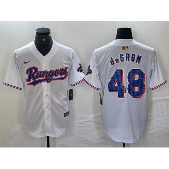Men's Texas Rangers #48 Jacob deGrom White 2024 Gold Collection Limited Cool Base Jersey