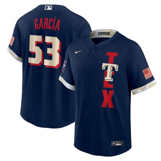 >Men's Texas Rangers #53 Adolis García Nike Navy 2021 MLB All-Star Game Replica Player Jersey