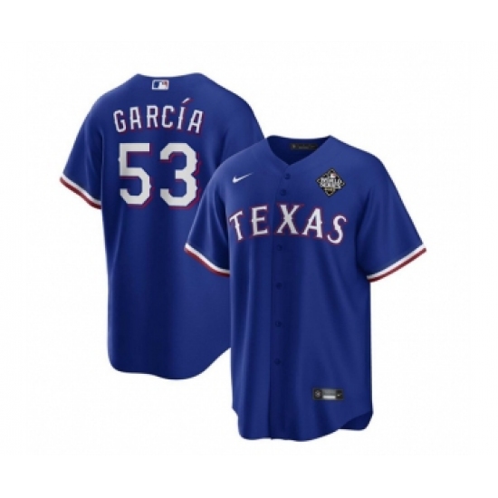 Men's Texas Rangers #53 Adolis García Royal 2023 World Series Stitched Baseball Jersey