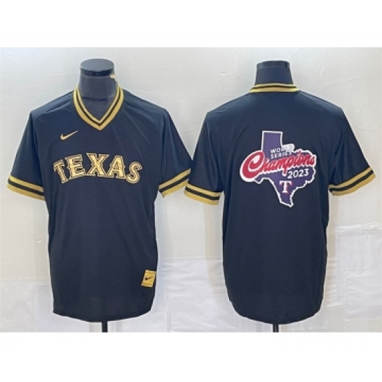 Men's Texas Rangers Black 2023 World Series Champions Big Logo Cool Base Stitched Baseball Jerseys