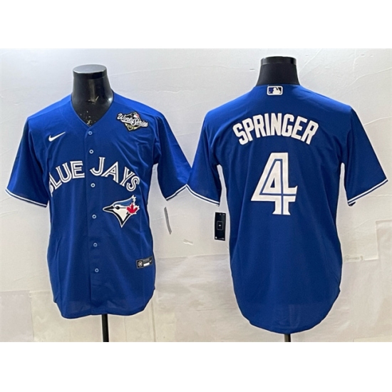 >Men's Toronto Blue Jays #4 George Springer Navy 2025 World Series Home Cool Base Stitched Baseball Jersey
