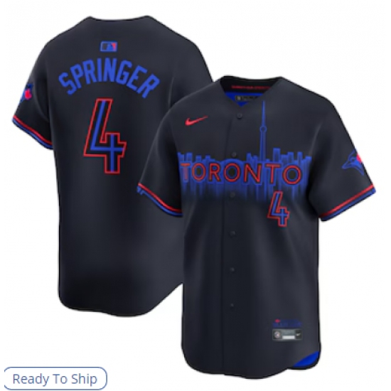 >Men's Toronto Blue Jays #4 George Springer Nike Black 2024 City Connect Limited Player Jersey
