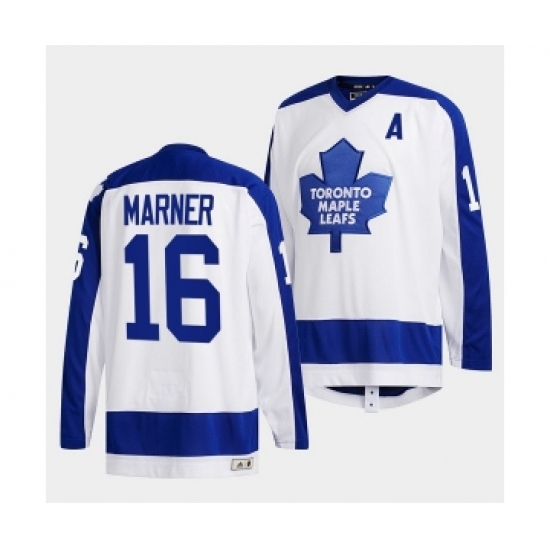 >Men's Toronto Maple Leafs #16 Mitchell Marner White Classics Primary Logo Stitched Jersey