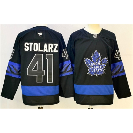 >Men's Toronto Maple Leafs #41 Anthony Stolarz Black 2024-25 Stitched Hockey Jersey