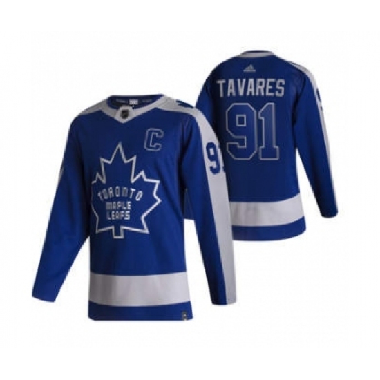 Men's Toronto Maple Leafs #91 John Tavares Blue 2020-21 Reverse Retro Alternate Hockey Jersey