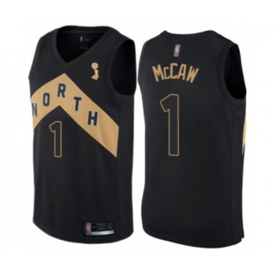 >Men's Toronto Raptors #1 Patrick McCaw Swingman Black 2019 Basketball Finals Champions Jersey - City Edition