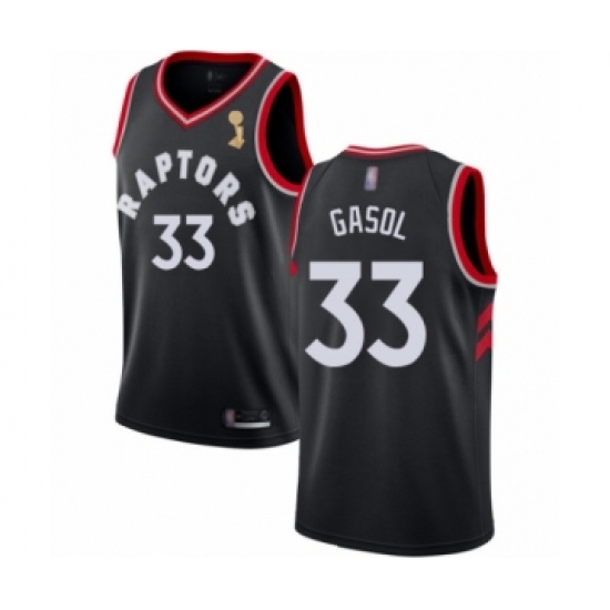 >Men's Toronto Raptors #33 Marc Gasol Swingman Black 2019 Basketball Finals Champions Jersey Statement Edition