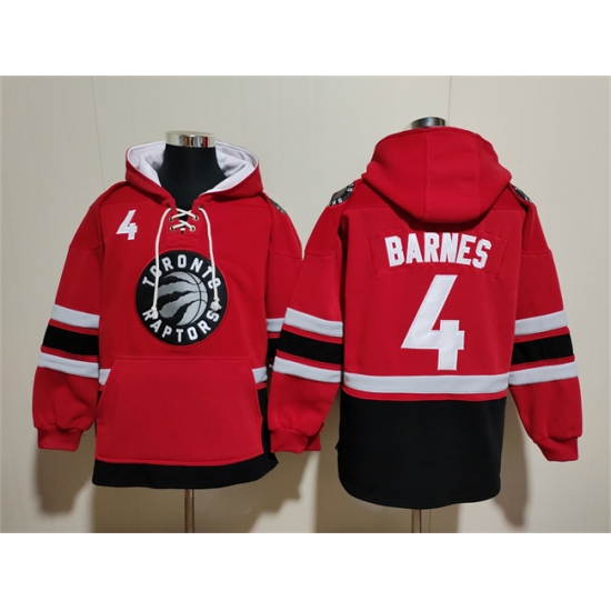 >Men's Toronto Raptors #4 Scottie Barnes Red Black Lace-Up Pullover Hoodie