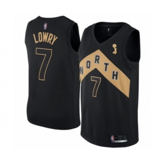 >Men's Toronto Raptors #7 Kyle Lowry Swingman Black 2019 Basketball Finals Champions Jersey - City Edition