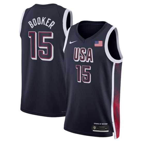 Men's USA Basketball #15 Devin Booker Navy 2024 Swingman Stitched Jersey