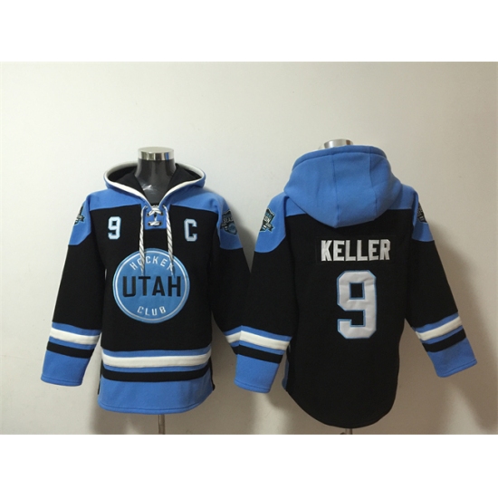 >Men's Utah Hockey Club #9 Clayton Keller Black Blue Ageless Must-Have Lace-Up Pullover Hoodie