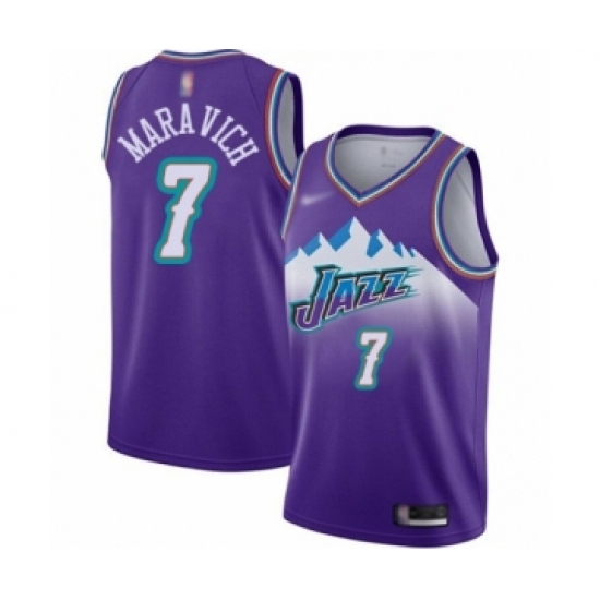 Men's Utah Jazz #7 Pete Maravich Authentic Purple Hardwood Classics Basketball Jersey