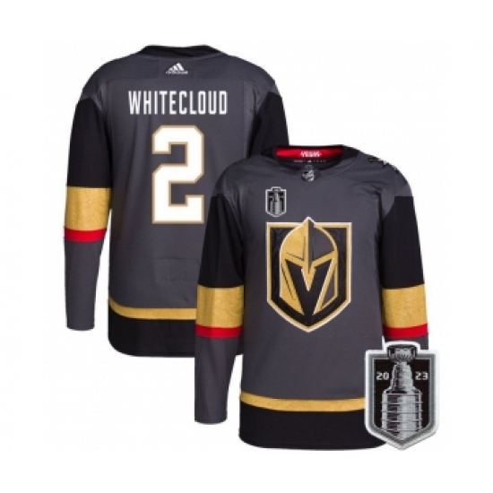 >Men's Vegas Golden Knights #2 Zach Whitecloud Gray 2023 Stanley Cup Final Stitched Jersey
