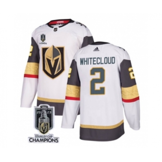 Men's Vegas Golden Knights #2 Zach Whitecloud White 2023 Stanley Cup Champions Stitched Jersey