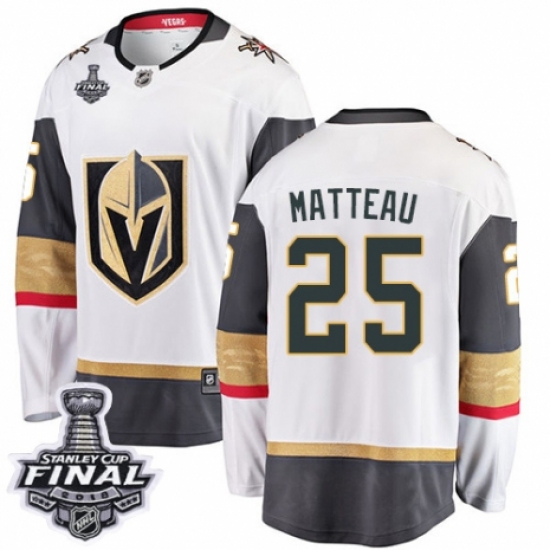 Men's Vegas Golden Knights #25 Stefan Matteau Authentic White Away Fanatics Branded Breakaway 2018 Stanley Cup Final NHL Jersey