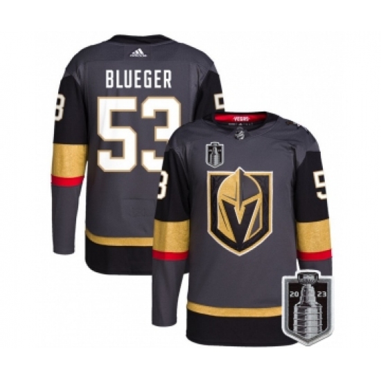 Men's Vegas Golden Knights #53 Teddy Blueger Gray 2023 Stanley Cup Final Stitched Jersey