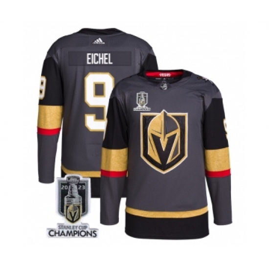 Men's Vegas Golden Knights #9 Jack Eichel Gray 2023 Stanley Cup Champions Stitched Jersey