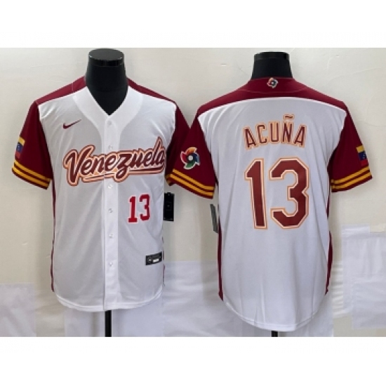 Men's Venezuela Baseball #13 Ronald Acuna Jr Number 2023 White Red World Classic Stitched Jersey1
