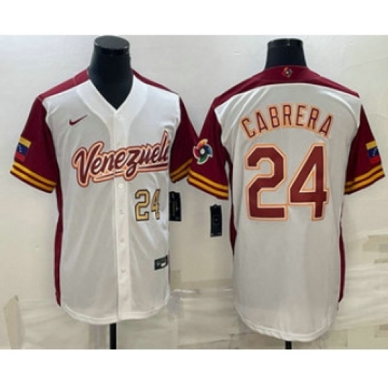 Men's Venezuela Baseball #24 Miguel Cabrera Number 2023 White World Classic Stitched Jersey