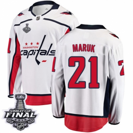 Men's Washington Capitals #21 Dennis Maruk Fanatics Branded White Away Breakaway 2018 Stanley Cup Final NHL Jersey