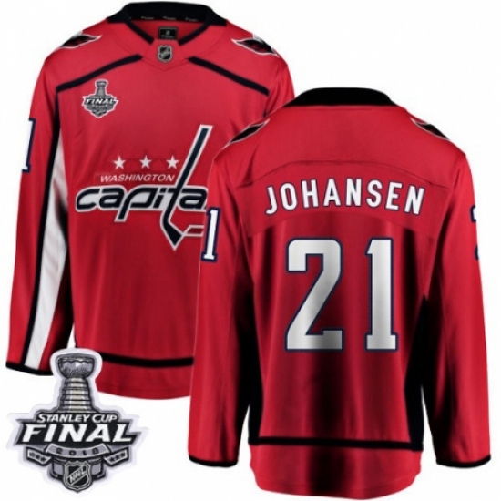 Men's Washington Capitals #21 Lucas Johansen Fanatics Branded Red Home Breakaway 2018 Stanley Cup Final NHL Jersey