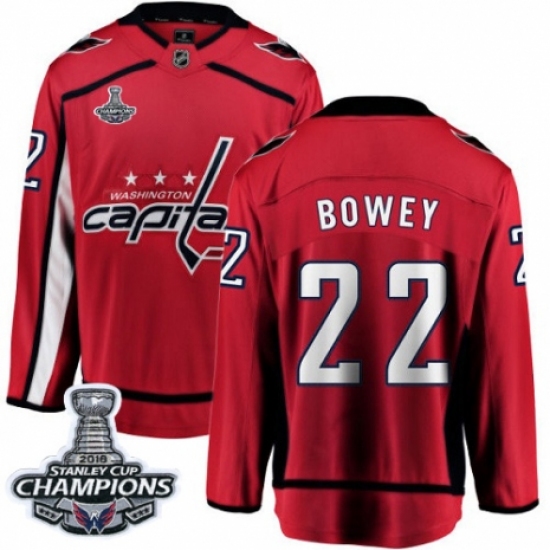 >Men's Washington Capitals #22 Madison Bowey Fanatics Branded Red Home Breakaway 2018 Stanley Cup Final Champions NHL Jersey