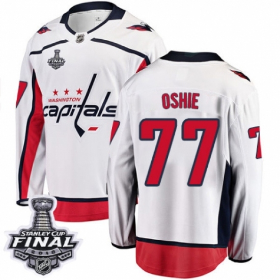>Men's Washington Capitals #77 T.J. Oshie Fanatics Branded White Away Breakaway 2018 Stanley Cup Final NHL Jersey