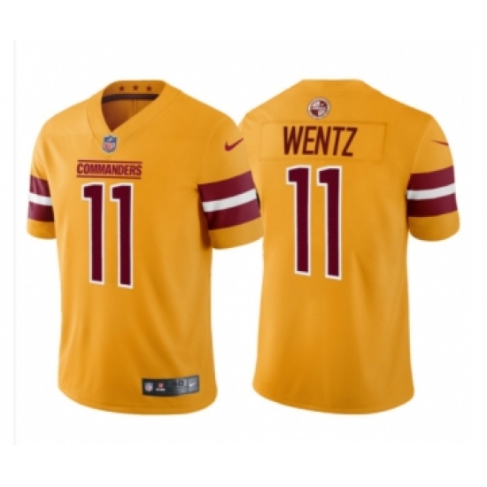 Men's Washington Commanders #11 Carson Wentz Gold Burgundy Stitched Jersey Trade