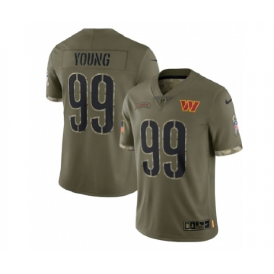 >Men's Washington Commanders #99 Chase Young 2022 Olive Salute To Service Limited Stitched Jersey