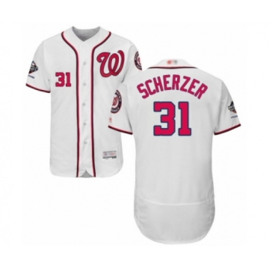 Men's Washington Nationals #31 Max Scherzer White Home Flex Base Authentic Collection 2019 World Series Champions Baseball Jersey