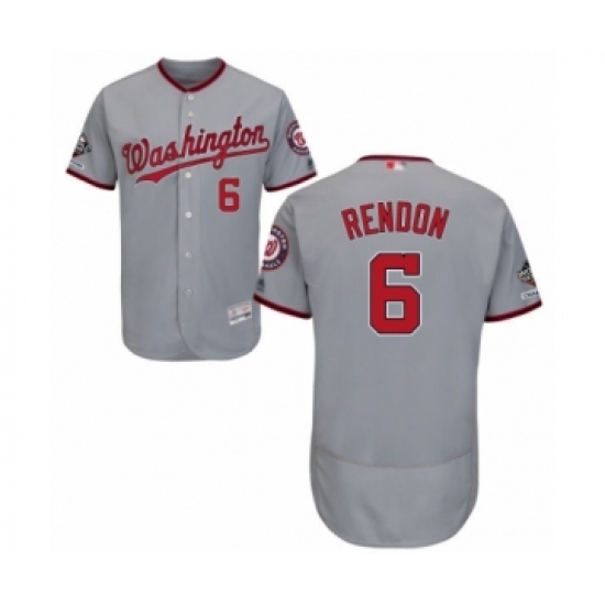 Men's Washington Nationals #6 Anthony Rendon Grey Road Flex Base Authentic Collection 2019 World Series Champions Baseball Jersey
