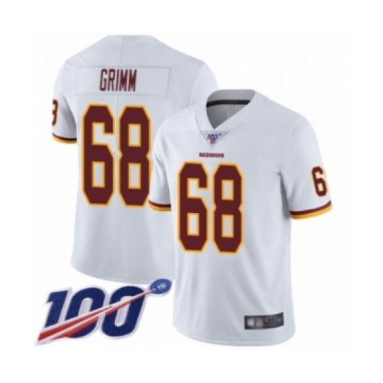 >Men's Washington Redskins #68 Russ Grimm White Vapor Untouchable Limited Player 100th Season Football Jersey