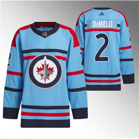 Men's Winnipeg Jets #2 Dylan DeMelo Light Blue Anniversary Primegreen Stitched Jersey