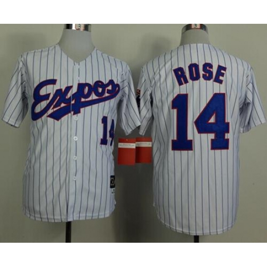 Mitchell And Ness Montreal Expos #14 Pete Rose White Strip Throwback Stitched Baseball Jersey
