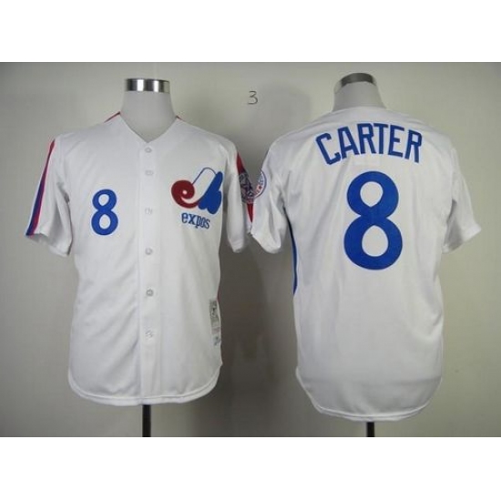 Mitchell And Ness 1982 Expos #8 Gary Carter White Throwback Stitched Baseball Jersey
