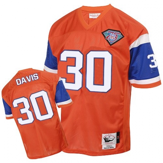 Home>NFL>Denver Broncos>Terrell Davis>Mitchell And Ness Denver Broncos #30 Terrell Davis Orange Authentic Throwback NFL Jersey