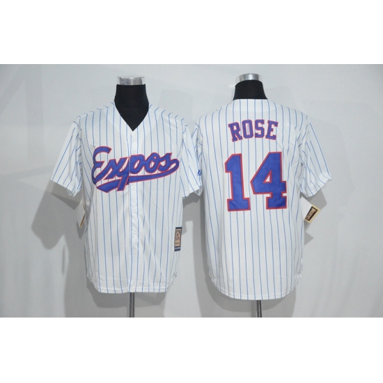 Mitchell And Ness Montreal Expos #14 Pete Rose White Strip Throwback Stitched Baseball Jersey